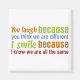 Farbenfrohe positive Bestätigung Sie lachen, weil Sie denken, wir sind anders, ich lächle, weil ich weiß, dass wir alle die gleiche sind