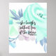 "Sie lacht ohne Angst vor der Zukunft" Zeitlose und inspirierende Sprichwörter Vers in modernen Schriften mit lila und blauen Aquarellfarben-Blume.