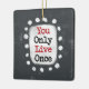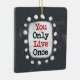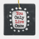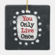 Fett formatierter Text mit dem Text "You Only Live Once" zentriert sich vor einem grauen Hintergrund. Der schwarze Text sitzt auf einem weißen Rechteck mit großen, texturierten weißen Punkten um ihn herum, was einen spielerischen Kontrast zu der soliden Hintergrund der Farbe bietet.