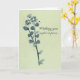 "Herzlich willkommen und Ruhe" in beruhigenden Farben des Beileids, mit einem blauen Blumenstamm, einem Schmetterling und einer Biene auf einem leicht strukturierten Hintergrund. Innen: Unsere Gedanken sind mit Ihnen in dieser schwierigen Zeit. Wir wünschen Ihnen viel Komfort und Ruhe.