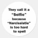 Für den Sarkasmusliebhaber in uns allen. Karo aus diesem witzigen "Sie nennen es ein Selfie, weil Narcissistie ist zu schwer zu zaubern" Design auf Bekleidung und Geschenke.