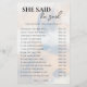 Sie sagte, er sagte Brautparty Game Cloud Nine Flyer