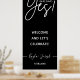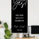 Einfaches kalligrafisches Engagement Party-Zeichen mit "She say Yes!"-Schrift. Verschiedene Hintergrundfarben verfügbar: Schwarz, Navy Blau, Burgund, Emerald und Rust. Namen und Ereignisdatum können bearbeitet werden.