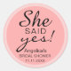 "SIE SAGTE JA" Brautparty Pink Envelope Gunst Runder Aufkleber