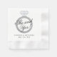 Die Servietten für Hochzeitsfeiern oder Brautpartys sind mit einem glänzenden Platindiamantenring ausgestattet, der mit dem Drehbuch "She say Yes!" Overlay und einer eigenen Monogramm versehen ist, die mit den Braut- und Bräutigam-Namen und dem Datum personalisiert werden können.