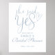 Sie sagte ja Dusty Blue Brautparty Begrüßungszeich Poster