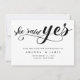 Moderne minimalistisch schwarz sagte sie ja Drehbuch Save the Date Karte. Diese elegante Karte verfügt über handgeschriebene Schrift in schwarzer Schrift mit niedlichem rotem Herz über dem Text "she say yes" auf weißem Hintergrund und Ehedetails und Namen in Hauptstadt geschrieben in schwarz Farbe.Add Website-Adresse auf der Rückseite der Karte. Um diese Vorlage zu bearbeiten, klicken Sie auf Weitere Anpassung.