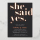 Moderne und minimalistische Einladungen in der Verlobungsfeier zeichnen sich durch schicken Schwarz-Weiß-Stil aus, der mit "sie hat ja gesagt" in übergroßen Rose mit Goldfolien-Retro-Schriftzeichen versehen ist. Personalisieren Sie sich mit Ihren Verlobung Feierlichkeiten Details unten. Einladungen kehren zu einem Muster von bunten Sternen zurück.