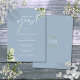 Diese elegante dustig blaue Begleiter-Party-Einladung kann mit Ihren Informationen in chic Typografie personalisiert werden, mit Ihren Monogramm-Initialen auf der Rückseite. Entwickelt von Thisisnotme©