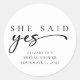 Sie sagte ja Minimalistisches Script-Brautparty Runder Aufkleber