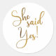 Ein moderner Goldskripttext mit She Said Yes im minimalistischen Stil mit Ihren individuellen Namen unten in einem einfachen modernen Schriftart.