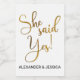 Ein moderner Goldskripttext mit She Said Yes im minimalistischen Stil mit Ihren individuellen Namen unten in einem einfachen modernen Schriftart.