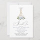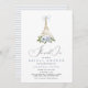Sie sagte, Oui Französisch Eiffelturm Brautdusche Einladend bietet goldenen Eiffelturm mit blauem Bogen auf dem Gipfel und blauen Blumen mit Grün. Auf der Rückseite der Einladung befinden sich Baby-blaue Streifen. Melden Sie mich für notwendige Anpassungen oder Matching-Elemente.