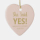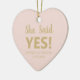 Verlobung Ankündigung Imitate Gold und rot rosa niedliches Herz Custom Foto Text Weihnachts Keramik Ornament. Anpassbarer Text Sie sagte ja! Sie können Text und Foto anpassen und selbst erstellen