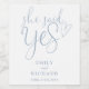 Dieses elegante, staubblaue Drehbuch "She't say yes" Getränkeetikett kann mit all Ihren Namen und einem besonderen Datum personalisiert werden. Entwickelt von Thisisnotme©