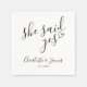 Diese stilvolle schwarz-weiße "sie sagte ja" Verlobungsparty Serviette kann mit Ihren Verlobungsdetails personalisiert werden. Entwickelt von Thisisnotme©