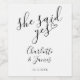 Dieses stilvolle "she say yes"-Party-Label kann mit Ihren Gesprächspartnerdetails personalisiert werden. Entwickelt von Thisisnotme©