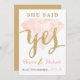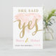 12x18-Halbglanz vorne, matte Rückeneinladung. Die Vorderseite hat einen rosa Diamanten mit goldglänzenden Buchstaben, die sagen: "Sie hat ja gesagt".