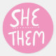 SIE / SIE Pronouns Pink Handschrift Set von Runder Aufkleber