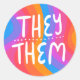 Sie/sie Pronouns Rainbow Handschrift Blatt Runder Aufkleber