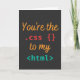 Dieses Programmier Pun mit dem Zitat "YOU'RE THE CSS TO MY HTML - WEB DEV PUN" ist das perfekte Geschenk für alle Programmierer, Noob-Programmierer, Gameentwickler, Programmierer, Webentwickler, Entwickler, Entwickler, Game Devs und andere, die Liebe Coding und Programmierung.