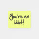 Wenn jemand Ihnen etwas übergibt, das Sie nicht gerade beschäftigen können, Klaps auf einem "Sie sind ein Idiot" Posten-it® und sie können, gerade Sie sich fühlen. Vervollkommnen Sie für ärgerliche Notizen von Ihrem Chef, von dummen Sachen, die, auf dem Anschlagbrett bekannt gegeben werden, oder sogar von den Stirnen der 1. Klassenidioten.
