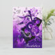 Lila Kunst mit Musiknoten und Musikinstrumenten.