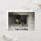 Einladungskarte zeigt ein braunes Maschinengewehr aus dem zweiten Weltkrieg in einer Betonsäulenbox