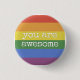 Dieser Knopfentwurf ist ein Grungeregenbogenhintergrund und gleicht die Wörter aus, ", das Sie" in einem weißen Grungeschreibmaschinen-Schriftart fantastisch sind.