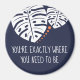 Dieses Design enthält das Zitat "Du bist genau da, wo du sein musst", monstera tropische Blätter auf marineblau Hintergrund