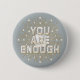 Sie sind genug Button-Button illustrieren abgeschrägte und Schrift, Vintage 3D-Typografie in einer Metal-Silber-und Goldfolie-Präsentation, die eine starke kraftvolle Botschaft und Erinnerung der Inspiration, dass Sie genug sind, egal, wie Sie fühlen. Es ist auch eine Erinnerung, dass, obwohl es manchmal schwierig ist, das Imposter-Syndrom zu vermeiden, nicht so schwer für sich selbst sein sollte. Es kann ein Geschenk für Geburtstage, Jahrestage oder für jeden anderen Tag sein. Erstellt mit einer Art von Schrift und Illustration für diejenigen, die nur Liebe Unique und Novelty Stile! Entworfen von Katrina Sutton. Foil effect (nicht real).