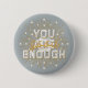 Sie sind Good Enough Button Button illustrieren abgeschrägte und Schrift, Vintage 3D Typografie in einer Metall Silber-und Goldfolie Präsentation, die eine starke kraftvolle Botschaft und Erinnerung der Inspiration, dass Sie genug sind, egal, wie Sie fühlen. Es ist auch eine Erinnerung, dass, obwohl es manchmal schwierig ist, das Imposter-Syndrom zu vermeiden, nicht so schwer für sich selbst sein sollte. Es kann ein Geschenk für Geburtstage, Jahrestage oder für jeden anderen Tag sein. Erstellt mit einer Art von Schrift und Illustration für diejenigen, die nur Liebe Unique und Novelty Stile! Entworfen von Katrina Sutton. Foil effect (nicht real).