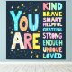 Dieses lebendige und aufregende Typografie-Design bricht mit Farbe und Positivität aus und macht es zu einer perfekten Erinnerung von Selbstwert und Selbstvertrauen. Mit kühnen, künstlerischen Schriften in einer spielerischen Mischung aus Mustern und Texturen werden die Wörter "You Are" zum Leben erweckt und Bekräftigungen wie "Kind", "tapfer", "stark" und "geliebt" bestärkt. Die skurrilen Doodles, verstreute Stars und charmante Schnörkel sorgen für eine unterhaltsame und moderne boho ästhetische Mischung aus Volkskunst und zeitgenössischer Typografie. Der dunkelblaue Hintergrund hebt die lebhaften Farben hervor und schafft einen auffallenden Kontrast, der die Botschaft hervorhebt. Ideal für diejenigen, die künstlerische Typografie mit einer Touch von Kreativität schätzen, strahlt dieses Design Ermutigung und Wärme aus und empfängt einen fröhlichen und ausdrucksvollen visuellen Stil. Egal, ob Sie zur fröhlichen Energie des Maximalismus oder zum beruhigenden Charme der Indie-Ästhetik gezeichnet werden, dieses Stück spricht mit seinem feierlichen und motivierend Geist ins Herz. AI generierte Kunstwerke.