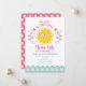 Eine glückliche, blumengeschmückte und sonnige Einladung für eine Mädchenfeier zum ersten Geburtstag. Personalisieren Sie es mit Ihrem Mädchennamen, Alter und Party Details. Entworfen für Sie von BlackBerry Boulevard.