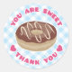 Donut danke Ihnen Aufkleber liest "You Are Sweet" über den oberen und "Danke" über den unteren Rand. Das Design verfügt über einen Schokoladendonut (oder Schokoladendughnut) mit blauem Gingham-Hintergrund und heißen rosa Texten mit Herzen. Diese Aufkleber eignen sich besonders gut zum Siegel von Kuverts oder Gastgeschenken und eignen sich hervorragend für Backgeschäfte, Donut, Donut oder zum Frühstücken von Party und Geschäften!