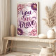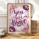 Ermutigen Sie Mut und Widerstandskraft mit diesem bestärkenden Kunstdruck "You are Brave". Mit fett gedruckter, handgeschriebener Typografie in lila- und rosa Farbtönen, verziert mit einem zarten, floralen Aquarellrahmen, dient dieses Stück als sanfte Erinnerung Ihrer inneren Kraft. Ideal, um eine Touch von Inspiration und Selbstbestätigung in Ihrem Schlafzimmer, Büro oder persönlichen Raum hinzuzufügen.