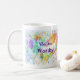 Die Kaffeetasse sagt: "Du bist es wert." Die Aquarellmalerei überlagert die Herzen in einem farbenprächtigen Regenbogen. Die Herzbilder werden in Aquarellfarben gezeichnet und gemalt. Ein Single mit großem Herzen definiert die Grenze zwischen zeichnend und gemalten Herzbildern. Die Kunst ist eine Hommage an die Gemeinschaft der Liebe und Freundschaft in unserem Leben, während sie sich mit der Welt überschneidet. Diese Tasse macht tolle Geschenke. Das Kunstwerk von Laurel Latto für gemeinnützige DonnaBellas Angels. Aufgabe der gemeinnützigen Organisation ist es, inspirierende Kunst für psychische Gesundheit zu bieten. Das Motto lautet "Medizin heilt den Körper, Kunst heilt das Soul". Weitere Informationen finden Sie online unter DonnaBellasAngels.org.