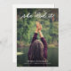 Dieser Spaß, trendy Abschluss-Party Einladung kennzeichnet das Foto des Absolventen auf der Front, mit den Wörtern, ", das sie tat sie!" in der modernen, weißen Typografie. Personifizieren Sie die Front mit ihrem Namen, Absolventjahr und Schulnamen. Die Rückseite enthält alle Partyinformationen.