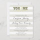 …. So glücklich zusammen! Diese moderne Hochzeitseinladung trägt einfache Streifen und populäre Festzeltbeschriftung zur schau, die ein kleines Stück des verheirateten Glücks des Bald-zusein Paares anzeigt.