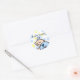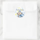 Niedliches kriechendes Baby mit einem blauen u. gelben Polkapunkthintergrund sind Sie eingeladener Aufkleber. Zusammenpassendes Einladungen und Porto-Briefmarken verfügbares ©jdsclipart