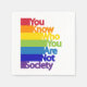 Dieses farbenfrohe Kunstwerk enthält die Aufschrift "Du weißt, wer du bist, nicht die Gesellschaft". Ein LGBT-Konzept, Freiheit und der Kampf für homosexuelle Rechte.
