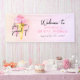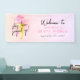 Sie wurde mit einem Banner-Begrüßungszeichen in Pink Ice Brautparty aufgedeckt