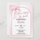 Pink Arch "She’s Bying the Knot" Bridal Dusche Einladung mit Watercolor Bow, Feiern Sie die Braut mit Eleganz und Charme mit dieser Bridal Dusche "She’s Bying the Knot" Einladung mit einem zarten rosa Wasserfarbenbogen und modernen gewölbten Rahmen. Der Hintergrund mit weichem Farbverlauf und das handgeschriebene Skript fügen eine romantische, feminine Touch hinzu, während das fette Layout es stilvoll und leicht lesbar behalte. Ideal für ein stilvolles und elegantes Brautparty, ein Tee-Party oder eine Frühjahrsfeier. Dieses Design, das mit dem Namen, dem Veranstaltungsdatum, der Uhrzeit und der Lage der Braut individuell gestaltet werden kann, vereint zeitlose Schönheit und modernen Flair in einem einzigen Interieur.