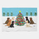 Sieben Labradors und Küchentücher für Labrador Besitzer. Niedliche Labrador Retriever Hunde sitzen rund um ihren wunderschönen Weihnachtsbaum im Schneefeld. Es gibt Schokoladenlabradoren, schwarze Labradoren, gelbe Labradoren und Fox Red Labrador auf dem Bild. Erstellt von Naomi Ochiai.