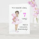 Eine 7. Geburtstagskarte für eine Nichte, mit einer schwarzen Fee in einem rosa Kleid, aus einer Aquarellillustrierung von Judy Adamson. Bitte fühlen Sie sich frei, die innere Nachricht anzupassen und kontaktieren Sie mich durch meinen Shop, wenn Sie Änderungen an der Frontabdeckung möchten.