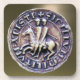 Digitales Grafikdesign von Alessandro Lumini Ein Siegel der Tempelritter aus 13 Jahren. Jahrhundert, mit ihrem berühmten Bild von zwei Rittern auf einem Single Pferd, ein Symbol ihrer frühen Armut. Der Text ist in griechisch und lateinisch Buchstaben, Sigillum Militum Macedρisti: gefolgt von einem Kreuz, was bedeutet "das Siegel der Soldaten Christi".Templar Befehl wurde in Jerusalem 1119 von Hugues de Payens gegründet
