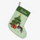 Desteis originelle Cartoon-Illustration einer niedlichen Siegel-Fellfarbe Italienische Grauhund Rasse Hund. Der Hund wird von einem festlichen Weihnachtsbaum stehend, der mit roten und gelben Ornamenten verziert ist, einer Perlgarage und einem gelben Stern, der auf dem Baumgipfel steht. Die Hintergrundfarbe ist hellgrün mit einem hellen Muster von Hundepflasterdrucken. Der obere Rand hat einen dunkelgrünen Rand mit einem personalisierbaren Textbereich für einen Namen.