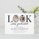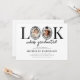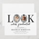 Feiern Sie einen Meilenstein im modernen Stil mit dieser skurrilen Einladung zur Abschlussfeier. Mit einem sauberen weißen Hintergrund und dem lustigen Spruch "Schau mal, wer graduiert ist" verwendet das Design clever den Buchstaben "O" als Bilderrahmen, komplett mit einer schicken schwarzen Schleife und einer Abschlussmütze für eine spielerische und dennoch elegante Note.