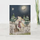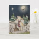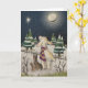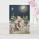 Ein Lamm schaut an einem sternenklaren Winterabend nach oben.