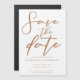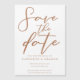 Diese siennenbraune Schrift Save the Date ist eine warme Regalfarbe für Braut oder Bräutigam, die nach einer Mischung aus Weich und Männlichkeit suchen. Die hübsche bräunliche minimalistische Typografie besticht durch einen einfachen, kursiven Text über einem schicken, modernen Serif-Schriftart. Dieser flexible Magnet lädt sowohl für Nachmittags- als auch für Abend Hochzeiten ein.